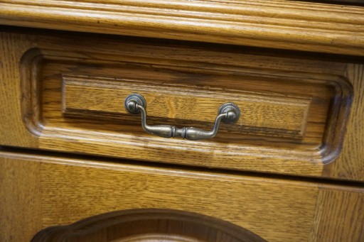 KREDENS POSIADA GŁĘBOKIE RZEŹBIENIA CO NADAJE MU CHARAKTERU