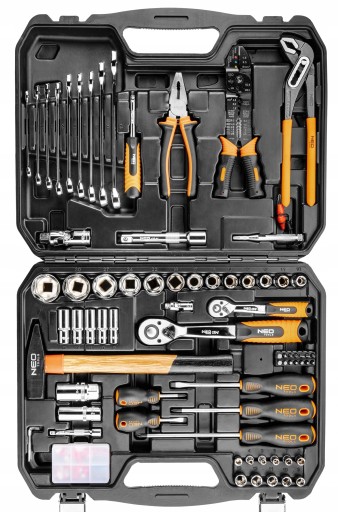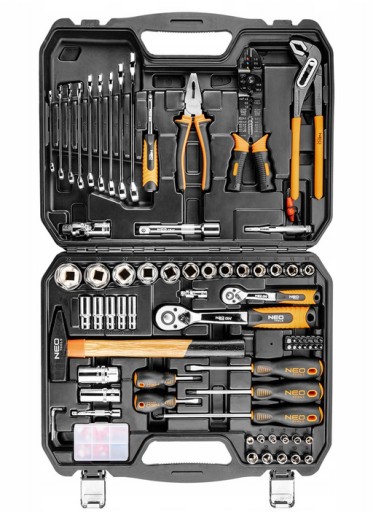 Zestaw narzędzi NEO to bardzo dobre rozwiązanie do prac mechanicznych, elektrycznych, hydraulicznych, domowych. 100 elementów to w sam raz, aby zaspokoić potrzeby domowego warsztatu.