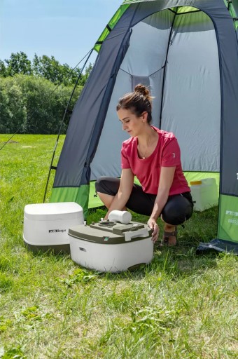 Oddzielany zbiornik oraz ruchoma rura spustowa pozwalają na opróżnienie toalety z nieczystości w sposób w pełni kontrolowany. Szczególną pomoc w transporcie zbiornika zapewnia wałek transportowy.