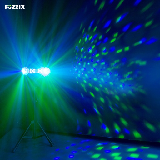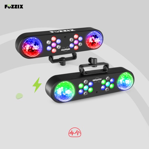 Obsługa światła dyskotekowego AllStar2 jest łatwa dzięki dołączonemu pilotowi. Wybierz program i ustaw prędkość, a lampka dyskotekowa zajmie się resztą. Możesz także wybrać różne efekty, takie jak stroboskop lub efekt zanikania. Wbudowany mikrofon pozwala mu reagować na dźwięk, dzięki czemu nie musisz się o to martwić. Fuzzix AllStar2 jest zatem najlepszym wyborem na przytulne domowe przyjęcie, na którym potrzebujesz kolorowego i ruchomego oświetlenia.