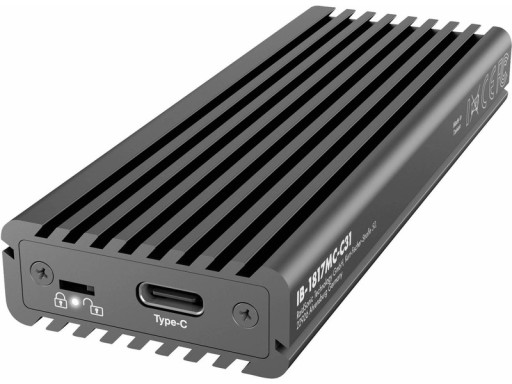 Protokół USB w wersji 3.1 (Gen 2) osiąga dwukrotnie wyższą prędkość danych przy 10 Gbit/s w porównaniu z niższą wersją USB. Szczególną cechą tej zewnętrznej obudowy jest połączenie SATA i NVMe. Wreszcie obie technologie mogą być obsługiwane w jednej obudowie! Ta obudowa ma trzy właściwości chłodzenia: konstrukcja żeberek chłodzących obudowy aluminiowej, silikonowa podkładka termiczna nakładana na nośnik danych oraz radiator, który zakrywa oba elementy wewnątrz. W ten sposób ciepło generowane przez wysoką wydajność obudowy jest optymalnie odprowadzane. Każdy, kto decyduje się na świetną obudowę o dużej pojemności danych, chce również, aby jego dane były dobrze zabezpieczone. Dlatego IB-1817MC-C31 jest wyposażony w funkcję ochrony przed zapisem. Za pomocą dołączonego małego narzędzia można przełączać przełącznik między chronionym przed zapisem a niezabezpieczonym.