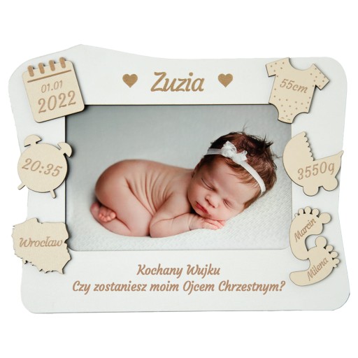 Piękna ramka metryczka, którą można podarować przyszłym Rodzicom Chrzestnym jako "Prośbę o zostanie Ojcem Chrzestnym/Matką Chrzestną".
