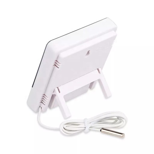 Wygodny przyrząd do codziennego kontrolowania temperatury w pomieszczeniu. Posiada również dodatkowe funkcje zegarka z budzikiem. Produkt wyposażony został w wygodny do odczytywania wyświetlacz LCD. Wykonany z tworzywa sztucznego w kolorze białym, pasuje do wnętrz z wyposażeniem o różnej kolorystyce.