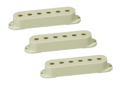 Komplet osłon do przystawek typu single-coil w rozmiarze pasującym do gitar i przetworników takich firm jak Fender, Seymour Duncan i podobnych. Dokładne wymiary na załączonym zdjęciu.