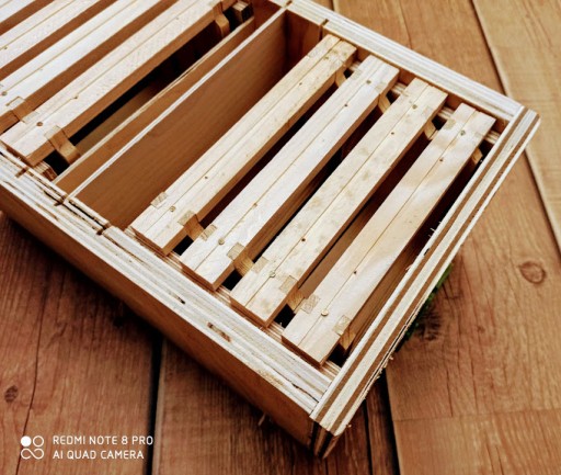 Zaletą tego ulika jest to, że po sezonie ramki możemy przełożyć do korpusu nadstawkowego wielkopolskiego. Wystarczy w korpus włożyć kawałek listewki stanowiący podparcie dla ramek 1/4.