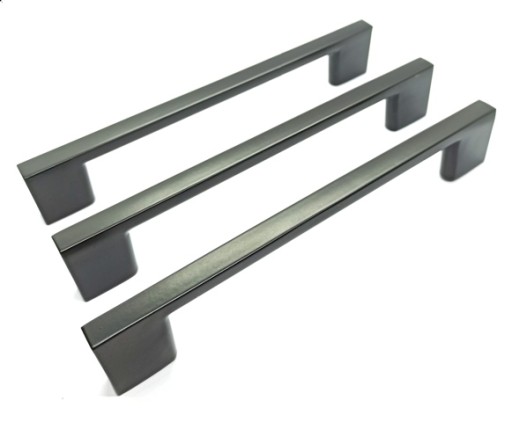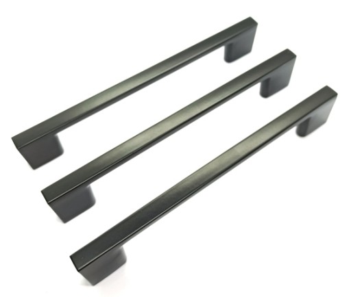 Proste, minimalistyczne uchwyty w kolorze czarnego matu, sprawdzą się zarówno w meblach w salonie, sypialni czy łazience.
