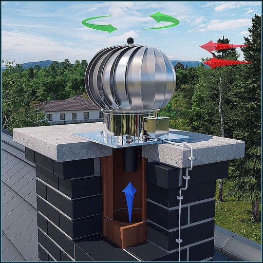 Obrotowa nasada kominowa TURBOWENT HYBRYDOWY jest urządzeniem dynamicznie wykorzystującym siłę wiatru do wspomagania ciągu kominowego, dodatkowo wyposażonym w silnik bezszczotkowy małej mocy do jego skutecznej stabilizacji. Montuje się ją na wylotach kominów wentylacyjnych o działaniu grawitacyjnym.