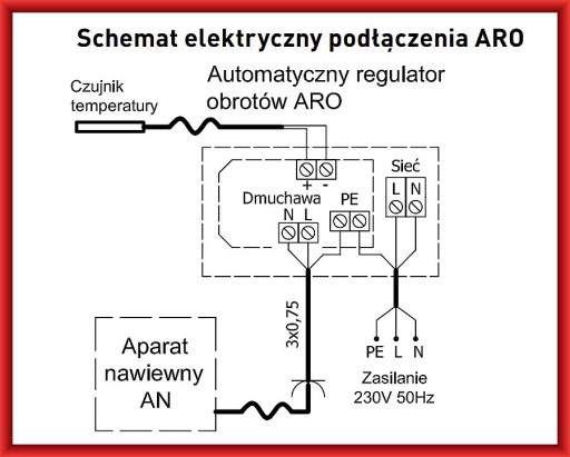 Mierzona temperatura nie ma wpływu na obroty silnika. W trybie automatycznym (AUTO) prędkość obrotowa silnika aparatu ustawia się automatycznie w zależności od mierzonej temperatury. Powyżej 40°C aparat nawiewny załącza się samoczynnie zapewniając minimalną prędkość obrotową. Prędkość wzrasta proporcjonalnie do wzrostu temperatury osiągając wartość maksymalną dla 80°C. Po wyłączaniu zasilania (przełącznikiem SIEĆ, lub w przypadku zaniku napięcia sieci zasilającej) aktualny tryb pracy i nastawione obroty są zapamiętywane oraz odtwarzane po ponownym załączeniu.