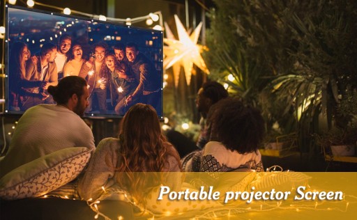 ☑️Ten przenośny ekran projektora o szerokim kącie widzenia do 160° i dużym rozmiarze 100 cali, co oznacza, że nie musisz siedzieć bezpośrednio przed ekranem, wystarczy wybrać najwygodniejszą pozycję podczas oglądania, aby cieszyć się wspaniałą nocą filmową. Nawet jeśli chcesz zaprosić sąsiadów lub znajomych do wspólnego oglądania filmu, nie będzie on wyglądał na zatłoczony, ponieważ nasz przenośny ekran projektora obsługuje dwustronną projekcję.