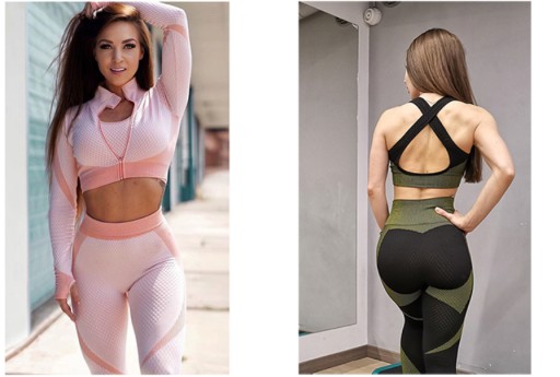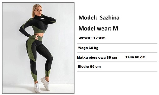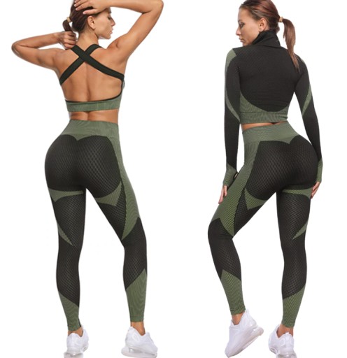 W SKŁAD ZESTAWU WCHODZI KOSZULKA Z DŁUGIM RĘKAWEM NA ZAMEK, LEGINSY, SPORTOWY STANIK