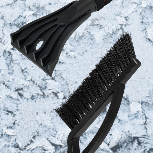- Oferujemy produkt 2w1 – z jednej strony znajduje się zmiotka do sypkiego śniegu, a z drugiej plastikowy skrobak do przymarzniętego lodu.