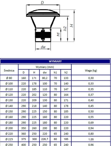 Daszek, parasol, nasada, komin fi 120 kwasówka DK