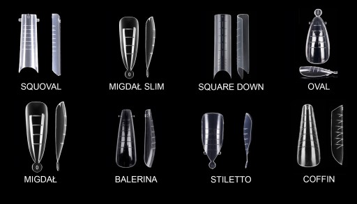 Uzyskaj swój ulubiony kształt paznokci, dzięki wykorzystaniu szablonów, które nadadzą im idealny kształt.