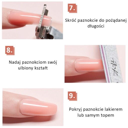 Do przedłużania paznokci użyj akrylu, żelu lub akrylożelu.