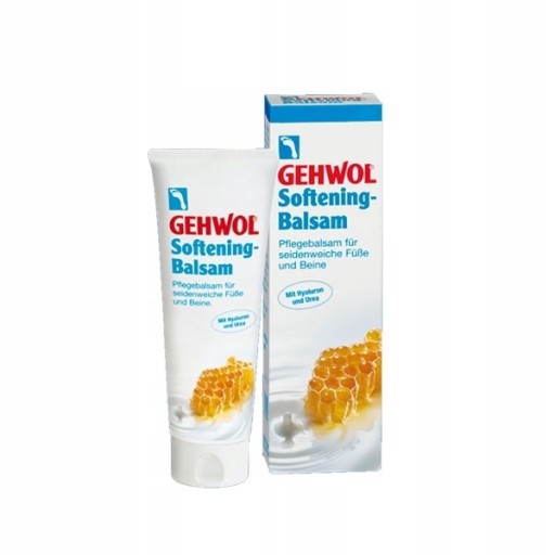 Kosmetyk Gehwol balsam zmiękczający posiada w składzie kwas hialuronowy i mocznik, który wiąże wodę w głębokich warstwach skóry i zmiękcza twarde partie naskórka. Obecny olejek z awokado przyczynia się do odżywienia, nawilżenia i regeneracji skóry. Działa zapobiegawczo na utratę wody, dzięki tworzeniu filmu ochronnego na powierzchni. Preparat zawiera również proteiny z mleka i wyciąg z miodu, dzięki czemu skóra jest jedwabiście miękka i widocznie gładka.
