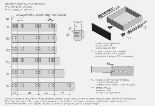 - regulacja szuflady w 3 płaszczyznach- wysokość, szerokość, głębokość,