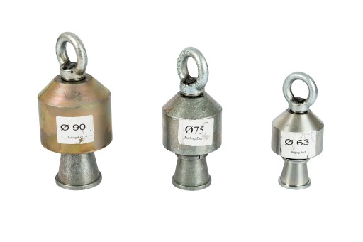 Głowice do wciągania rur z tworzywa sztucznego. Chwytaki są wykorzystywane do instalacji rur podczas m.in. przewiertów i przecisków.