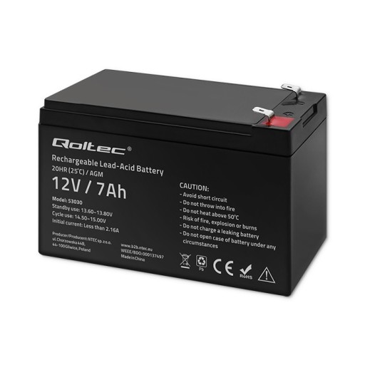 Twoje stabilne źródło energii na co dzień i od świętaWykonując codzienne czynności lub będąc w pracy z pewnością korzystasz z urządzeń, które by sprawnie działać - potrzebują prądu. Część z nich pobiera energię z sieci i narażona jest na wahania napięcia lub braki w dostawie prądu. Do sprawnego działa konieczne jest więc awaryjne źródło zasilania. Są to m.in.:- systemy alarmowe i monitoring,- oświetlenie awaryjne,- sprzęt medyczny, - wagi i kasy.Inne natomiast posiadają silniki spalinowe i wykorzystują jedynie prąd akumulatorowy. Wśród nich wymienić można:- quady,- wózki widłowe,- skutery,- łodzie,- kampery.By zapewnić im stabilne i bezpieczne źródło prądu przygotowaliśmy szeroki wybór rozwiązań. Sprawdź ofertę akumulatorów AGM Qoltec i wybierz wariant najlepiej pasujący do Twoich potrzeb.Jeden akumulator, dwie opcje działania. Sprawdź, która z nich jest dla CiebieZastanawiasz się, gdzie najlepiej zastosować nasz akumulator? Czy jako stałe źródło energii, lub zasilanie awaryjne dla urządzeń zwykle podpiętych do sieci elektrycznej? Odpowiemy szczerze: akumulator 7Ah AGM polecamy użytkować w pracy buforowej. Dlaczego?Buforowy tryb pracy jest zalecany dla technologii AGMWykorzystywana bateria będzie bardzo sprawnie funkcjonowała i cieszyła się długą żywotnością - wynoszącą nawet 10 lat, jako zasilanie awaryjne w pracy buforowej np. do zasilaczy UPS, w systemach alarmowych, oświetleniu awaryjnym czy pojazdach spalinowychDo użytkowania w cyklicznym trybie pracy polecamy akumulatory Gel, Deep Cycle oraz LiFePO4.Na czym polega technologia AGM?Technologia AGM (Absorbent Glass Mat), w jakiej projektowane są nasze akumulatory oznacza, że elektrolit zawarty w akumulatorze jest wchłonięty przez specjalne maty z składające się z włókna szklanego o wysokiej porowatości umieszczonych pomiędzy ołowianymi płytkami pokrytych matami z. Rozwiązanie to pozwala na dłuższą pracę baterii, dzięki procesowi powolnego rozładowywania.Niezawodny pod każdym kątem - bezpieczeństwo twoich urządzeń z akumulatorem AGMPoczuj się bezpiecznie zaletą akumulatorów AGM jest bez wątpienia pełna bezobsługowość, a bezawaryjność jest utrzymywana przez długi czas. Jest to możliwe dzięki konstrukcji charakteryzującej się:- szczelnością obudowy,- odpornością na wstrząsy,- możliwością zamontowania w różnych pozycjach.Kupując akumulator AGM 7Ah otrzymujesz pełną gwarancję niezawodności. Chcesz aby Twój sprzęt pracował na pełnych obrotach bez ograniczeń? Teraz masz pewność, że otrzyma potrzebną do działania dawkę energii bez kompromisów.Długotrwała żywotność akumulatora - ciesz się energią znacznie dłużej!Zdecydowanie dodatkowym atutem naszych akumulatorów jest ich żywotność bez konieczności konserwacji, dzięki czemu pracują nawet 10 lat!Jest to możliwe dzięki zastosowaniu najwyższej jakości komponentów, w tym czystego (nie-recyklingowanego) ołowiu. Jest on wolny od wszelkich zanieczyszczeń, które mogłyby obniżyć pojemność akumulatora. Natomiast obudowa została zaprojektowana z wysokiej klasy tworzywa mając na uwadze maksymalne wydłużenie okresu użytkowania poprzez ochronę wnętrza baterii.Zadbaj o swój akumulator, a będzie ci służył długie lataPamiętajmy, że prawidłowe użytkowanie oraz odpowiednie dbanie o akumulator AGM jest bardzo ważne dla jego żywotności. Częste i głębokie rozładowanie z pewnością nie wpłynie pozytywnie na jego sprawność. Aby cieszyć się długim życiem akumulatora staraj się:- unikać głębokiego rozładowania,- dbać o prawidłowy sposób ładowania - nie ładować akumulatora zbyt dużym prądem,- unikać bardzo niskich temperatur oraz długotrwałej ekspozycji na wysokie temperatury- stosować ładowarkę odpowiednią do danego typu akumulatora.Jak prawidłowo ładować akumulator agm, by uzyskać jego jak najdłuższą żywotność?Akumulatory AGM wymagają ładowania tak zwaną metodą stałonapięciową, najpierw prądem stałym, a następnie przy zachowaniu stałego napięcia. W swojej ofercie posiadamy inteligentne ładowarki, które są idealne do tego typu akumulatora. Dzięki temu możesz uniknąć ryzyka jego zniszczenia poprzez nieodpowiedni sposób ładowania.