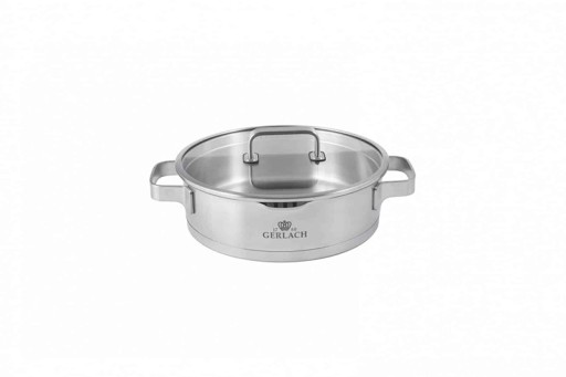- Trójwarstwowe dno z wbudowanym dyskiem aluminiowym zapewnia równomierną dystrybucję ciepła i zapobiega odkształceniom.