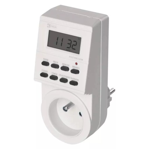 To cyfrowe gniazdko przełączające albo inaczej timer elektroniczny jest idealny do ustawienia czasów włączenia i wyłączenia dowolnych odbiorników elektrycznych. Działa niezawodnie również podczas Państwa nieobecności w domu.