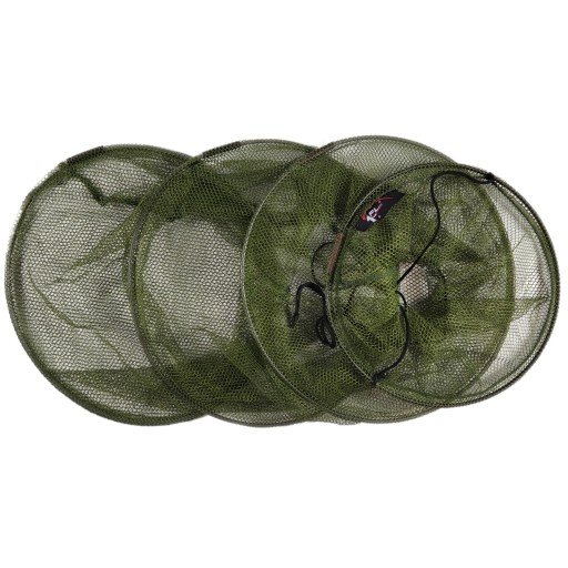 Obręcze wykonane z elastycznego materiału. Wyposażona jest w ściągacz do zamykania oraz linkę do przenoszenia lub zaczepienia o podpórkę. Niedroga oraz poręczna siatka, która przyda się na wypadzie na ryby.