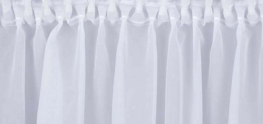 FIRANA uszyta z białego woalu, na taśmie SMOK 5cm, dół obszyty lamówką