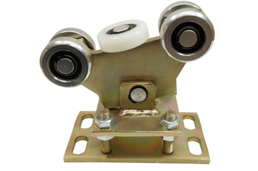 4 rolki zostały wykonanych z metalu a dwie są poliamidowe. Wszystkie rolki wózka bramy przesuwnej są łożyskowane aby zapewnić jak największą sprawność wózka .