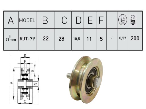 МЕТАЛЛИЧЕСКИЙ РОЛИК RJT-79-22 FI 79мм РОЛИКИ ДЛЯ Т-образной балки