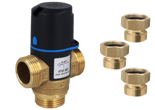 AFRISO ATM 363 to termostatyczny zawór mieszający przeznaczony do regulacji temperatury w domowych instalacjach ciepłej wody użytkowej oraz centralnego ogrzewania. Posiada funkcję "bez oparzeń".