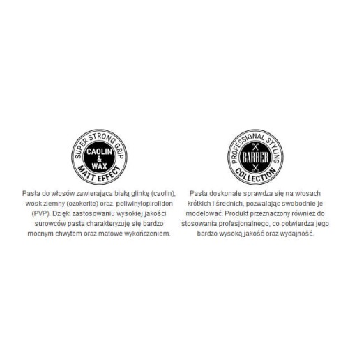 Wzbogacona o białą glinkę (kaolin), poliwinylopirolidon (PVP) oraz wosk ziemny (ozokerite) pozwala na trwałe ułożenie fryzury, jednocześnie dbając o odpowiednie nawilżenie i kondycję włosów.