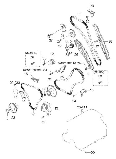 KIA SORENTO 2.5 CRDI 103KW 16V 4WD FY D4CB 02-04 KIA SORENTO 2.5 CRDI 125KW 16V 4WD FY D4CB 06-09 HYUNDAI H-1 STAREX 2.5 CRDI 81KW/ 125KW 16V D4CB 01- W ZESTAWIE: - 3 ŁAŃCUCHY - 3 NAPINACZE - 7 PROWADNIC - CZĘŚCI ORGINALE KIA/HYUNDAI ROZRZĄD BEZ KÓŁ . KOŁA MOŻNA DOKUPIĆ OSOBNO