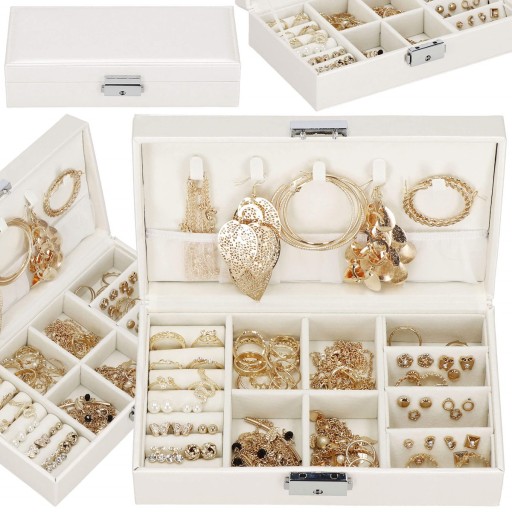 Szkatułka na biżuterię pozwoli odpowiednio zorganizować miejsce dla dodatków do stylizacji. Znajdzie swoje miejsce w garderobie, na toaletce czy komodzie. Mając wszystkie swoje ulubione elementy biżuterii w jednym miejscu możesz zapomnieć o szukaniu drugiego kolczyka, który gdzieś się zapodział bądź o rozplątywaniu naszyjnika.