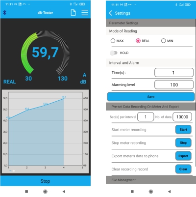 DECYBELOMIERZ SONOMETR MIERNIK POZIOMU NATĘŻENIA DŹWIĘKU BLUETOOTH 30-130dB