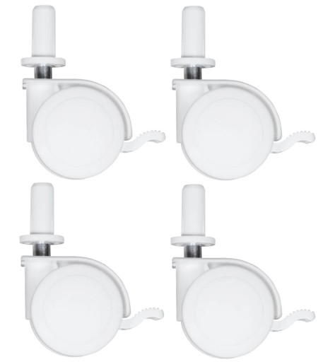- Cztery białe gumowane kółka z hamulcem w komplecie