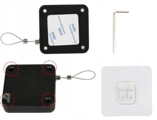 - Samozamykacz posiada otwory na wkręty oraz zamontowaną silną taśmę klejącą renomowanej marki 3M.
