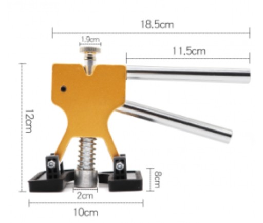 Urządzenie do usuwania wgnieceń karoserii samochodowej. Zestaw niezbędny w każdym garażu i warsztacie! Oferuje możliwość łatwego i skutecznego usuwania wgniotek. Urządzenie wykonane jest z wysokiej jakości materiałów, z dbałością o szczegóły i precyzję wykonania, gwarantując długą i skuteczną pracę narzędzia.