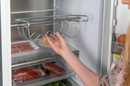 Półka VÖGEL VE4RHBH00 nie wymaga skomplikowanego montażu czy zdejmowania półek w lodówce. Wystarczy, że wsuniesz ją na jedną z półek w lodówce i gotowe! Teraz butelki i puszki nie będą toczyć się po lodówce i ograniczać miejsca na inne produkty.