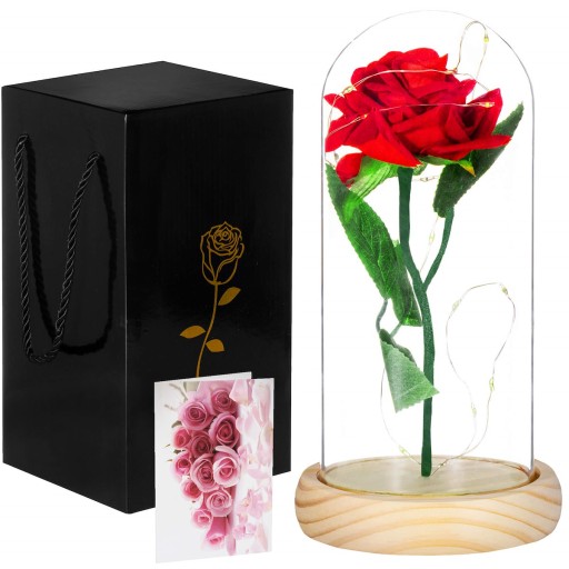 Piękna róża, ukryta pod szkłem, ozdobiona lampkami led i zapakowana w minimalistyczne, ale bardzo eleganckie pudełko, z pewnością zrobi wrażenie. Całość wygląda luksusowo, niespotykanie i tajemniczo - nie musisz robić nic więcej, niż tylko zaskoczyć obdarowaną osobę wręczając jej niespodziankę.