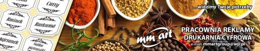 Przezroczyste etykiety samoprzylepne z nadrukiem w kolorze białym, na pojemniki do przypraw / słoiki / pudełka / itp. - prosto od producenta.