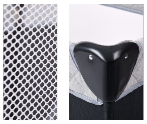 Łóżeczko może pełnić funkcję nie tylko standardowego łóżeczka, ale również kojca i placu zabaw dla małych smyków. Mniejsze dzieci mogą w nim się czołgać i raczkować, starsze uczyć wstawania i stawiania pierwszych samodzielnych kroków. W łóżeczku możesz swobodnie pozwolić dziecku spać lub bawić się nawet w cieplejsze, słoneczne dni. Boczne ścianki zbudowane z siatki przepuszczają powietrze, dbając w ten sposób przez cały czas o odpowiednią wentylację wewnątrz łóżeczka.