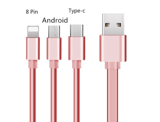 Nowoczesny przewód USB 3 w 1 - naładujesz nim nawet 3 urządzenia w tym samym czasie, I-phona, Androida (microUSB) oraz typ C