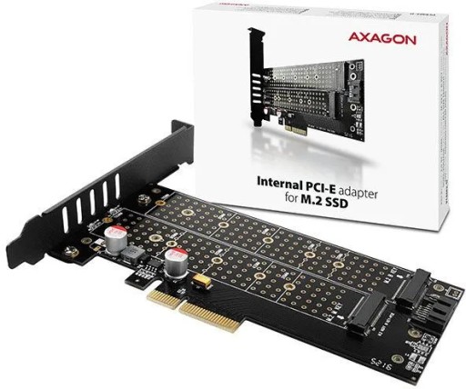 Adapter wewnętrzny AXAGON PCEM2-D umożliwia przyłączenie aż dwóch dysków SSD M.2 do komputera stacjonarnego. Jest więc idealnym wyborem do upgrade komputera stacjonarnego, który nie jest wyposażony w slot M.2.