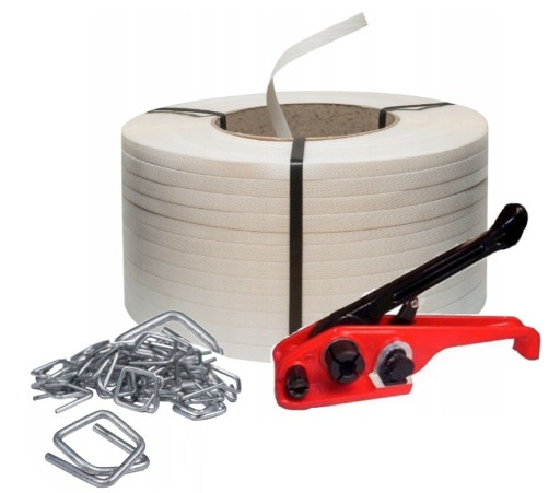 Profesjonalny system pakowania ładunków o wadze do 300,00kg. Wytrzymałość taśmy obliczono dla 4 spięć taśmą. Zestaw pakowy szeroko wykorzystywany w zakładach tartacznych, stolarskich, budowlanych, betoniarskich, gospodarstwach rolnych, sadowniczych i ogrodniczych. Wszędzie tam gdzie istnieje konieczność wiązania materiałów, które wymagają stabilizacji w trakcie ich transportu lub składowania.