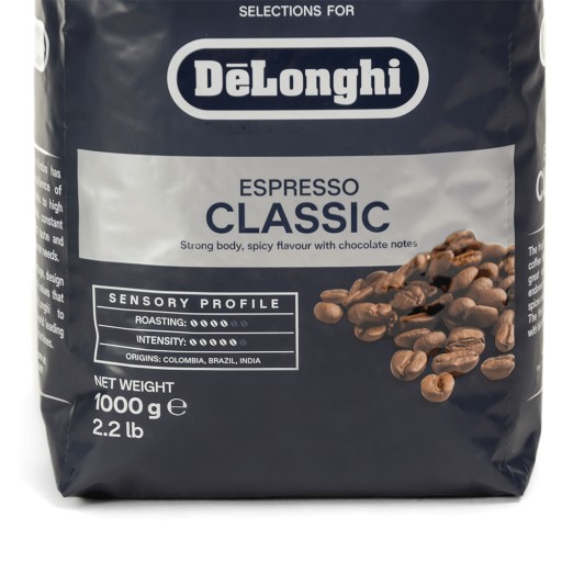Kawa Kimbo Delonghi Espresso Classic to połączenie dwóch rodzajów kawy. Jest to wyselekcjonowana wysokiej jakości delikatna arabica (40%) oraz ostra robusta (60%). Dzięki połączeniu dwóch światowych graczy w branży kawowej palarni Kimbo i producenta ekspresów Delonghi powstała nowa jakość kawy Kimbo Delonghi.