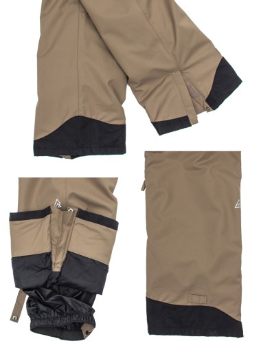 - Rozpinane proste nogawki ze śniegołapem. Śniegołap od wewnętrznej strony wykończony silikonową gumą utrzymującą go na bucie.