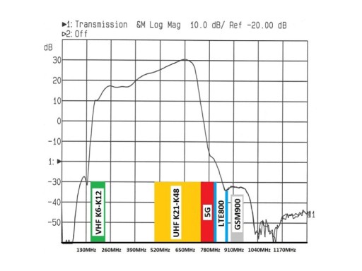 - Wysoka odporność na sygnały zakłócające sygnał TV cyfrowej DVB-T2: CB, FM, LTE700 (5G), LTE800 (4G), GSM900, Wi-Fi, Bluetooth