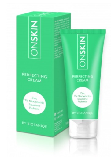 Krem do twarzy ONSkin by Biotaniqe Perfecting Cream został stworzony z myślą o pielęgnacji cery problematycznej. Kosmetyk minimalizuje widoczność wyprysków, a także zapobiega ich ponownemu powstawaniu. Dodatkowo stymuluje procesy odnowy komórkowej, a także znacznie przyspiesza regenerację naskórka. Krem przeciw niedoskonałościom może być także stosowany jako baza pod makijaż.