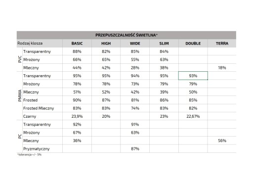 ✅ KLOSZE CZARNE MAJĄ ZBLIŻONĄ PRZEPUSZCZALNOŚĆ ŚWIATŁA DO KLOSZY MLECZYCH