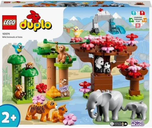 - Poznaj azjatycką przyrodę — zestaw LEGO® DUPLO® Dzikie zwierzęta Azji (10974) zawiera szczegółowe modele azjatyckich środowisk naturalnych i figurki żyjących w nich zwierząt, a także rośliny i drzewa. Pozwala też odtwarzać realistyczne odgłosy