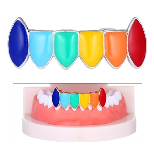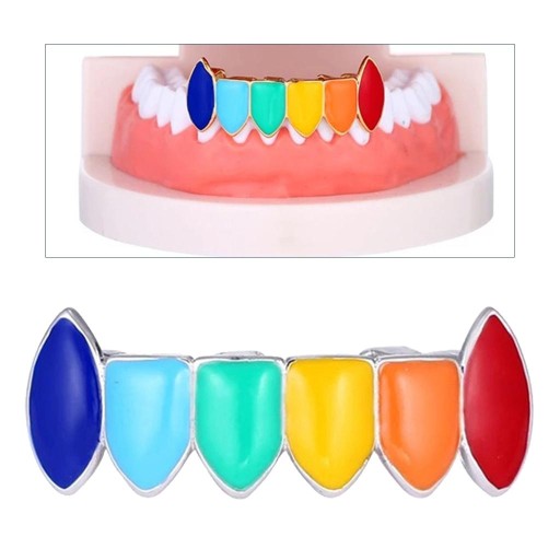 Kolorowe grille hip-hopowe z górnym i dolnym zębem, do osobistego noszenia lub prezentu dla przyjaciół.